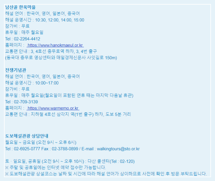 ◆ 서울도보해설관광 안내 ◆