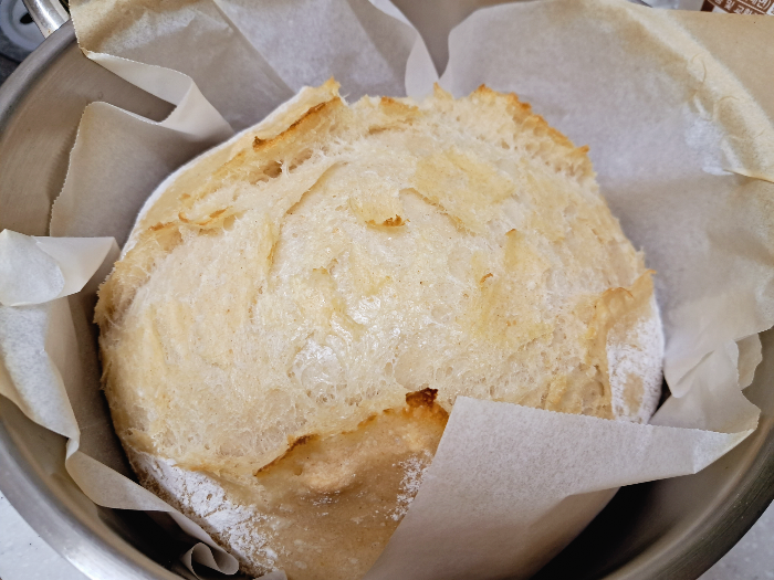8. 뚜껑 있는 스테인리스 냄비를 사용했어요. 빵이 더 잘 부푸는 게 느껴집니다. 냄비로 굽지 않을 때에는 그냥 베이킹 팬으로 사용했어요. 그래도 괜찮아요.