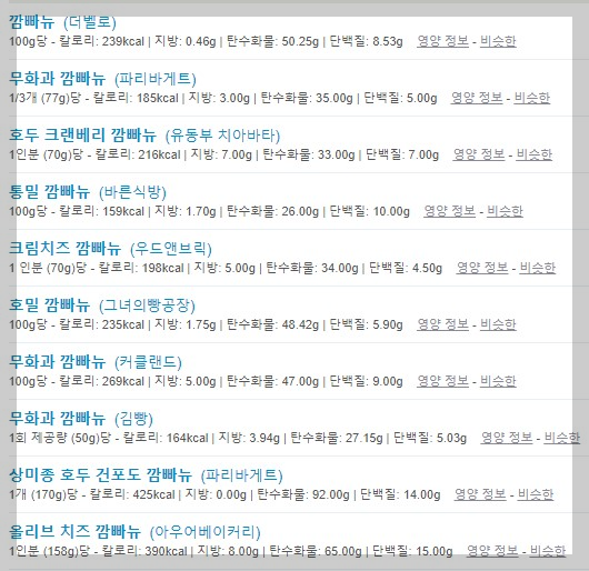 깜빠뉴 칼로리는 그리 높지 않은 것 같아요. 그래도 탄수화물이니 너무 많이 먹으면 안 되겠지요? 깜빠뉴 칼로리 참고 사이트는 아래 링크된 fatsecret 입니다.