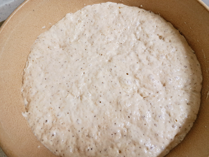 12시간 정도 지나서 반죽을 보면 이스트가 활성화되는 모습이 너무 재미있어요. 이런 게 빵 만드는 묘미 중 하나인 듯해요.