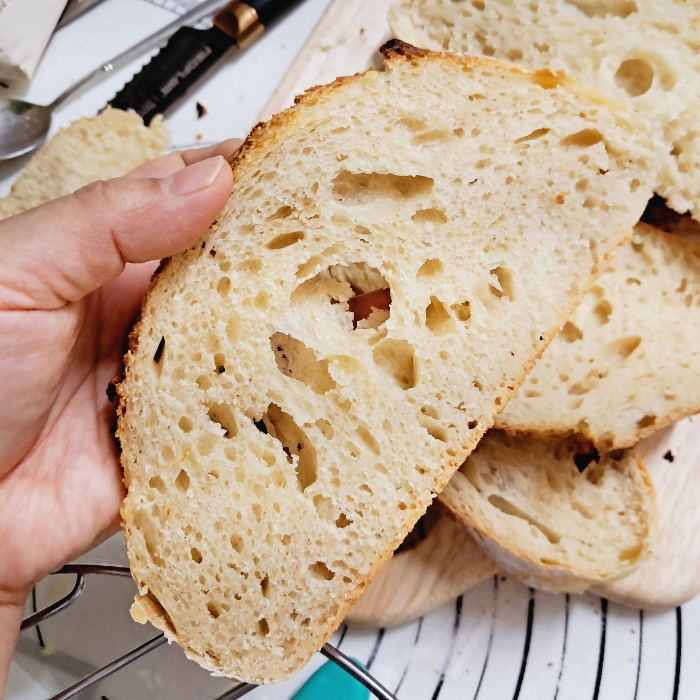 깜빠뉴 만들기 어렵지 않죠? 통밀을 섞어 통밀 깜빠뉴를 만들어 보는 것도 좋고 100% 강력분도 맛있어요. 통밀이 없다면 강력분, 중력분도 사용해 보세요.
