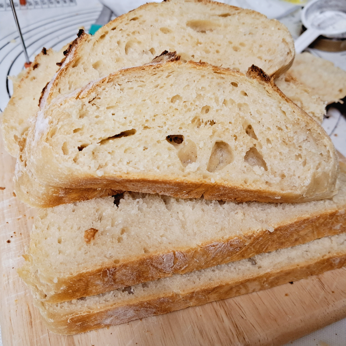 깜빠뉴 보관법은 빵이 식었을 때 이렇게 잘라서 밀폐용기 이용해 보관하고 냉동 후 자연해동 혹은 토스트 해서 먹으면 좋아요. 2일 안에 먹으라고 하던데 저는 3일 지나서 먹어도 맛있더라고요.