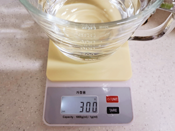따뜻한 물 300g / 인스턴트 드라이 이스트 1g