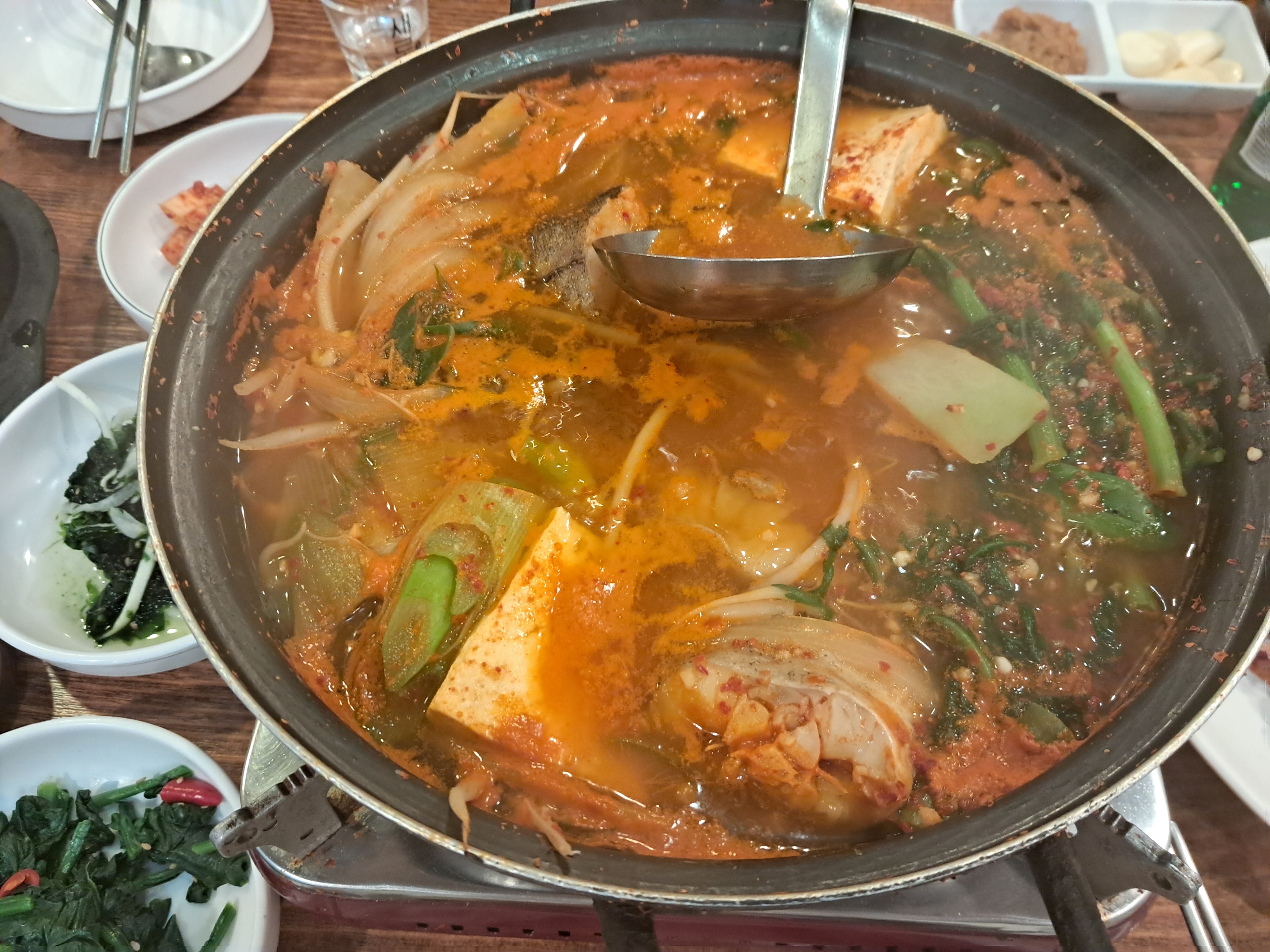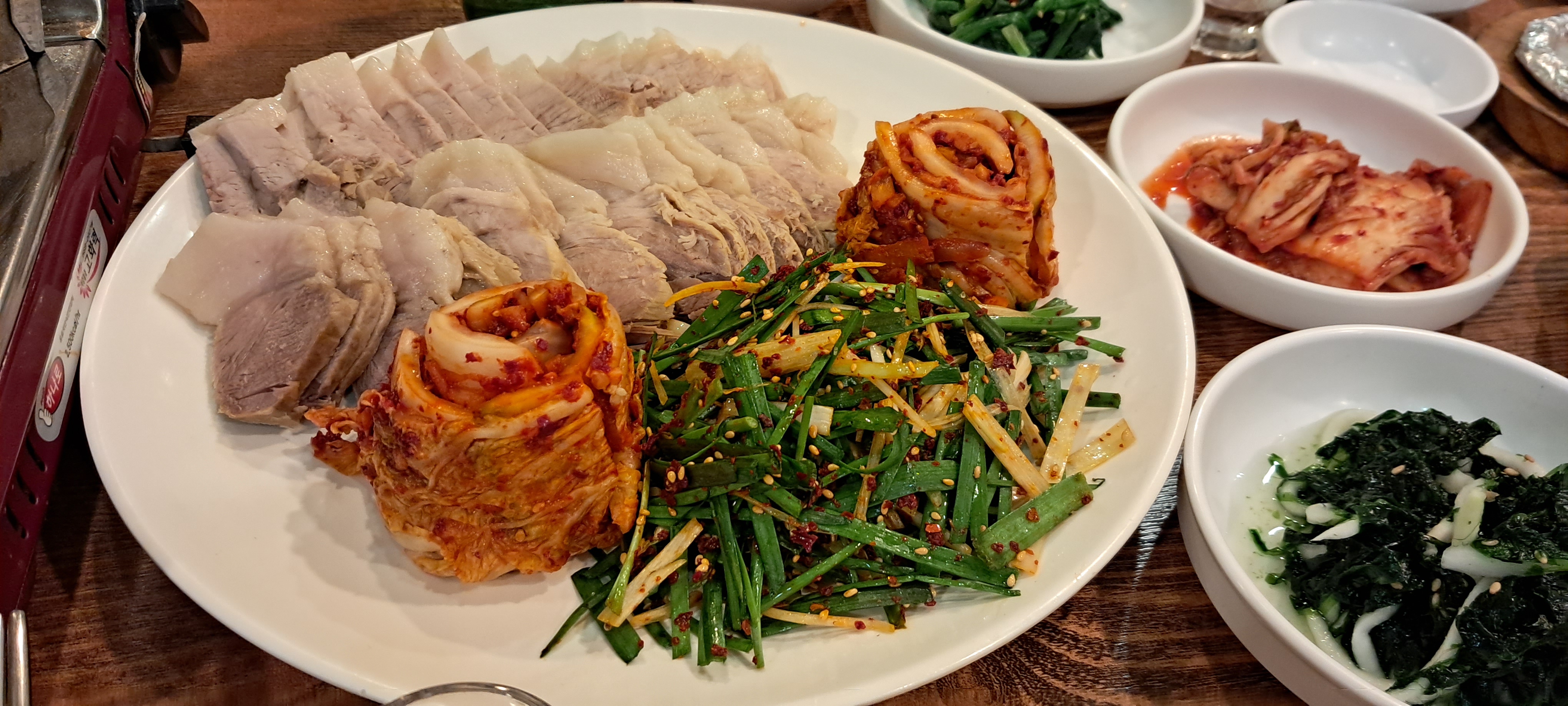 삼삼하게 무쳐내 부추무침과 배추김치, 보쌈김치를 곁들여 소주와 함께 먹으면 그저 그만이다.