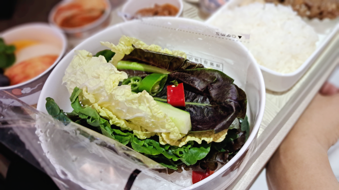 무엇보다 매우 매우 신선한 쌈채소가 마음에 들었고 신선한 과일도 김치도 만족스러웠다.