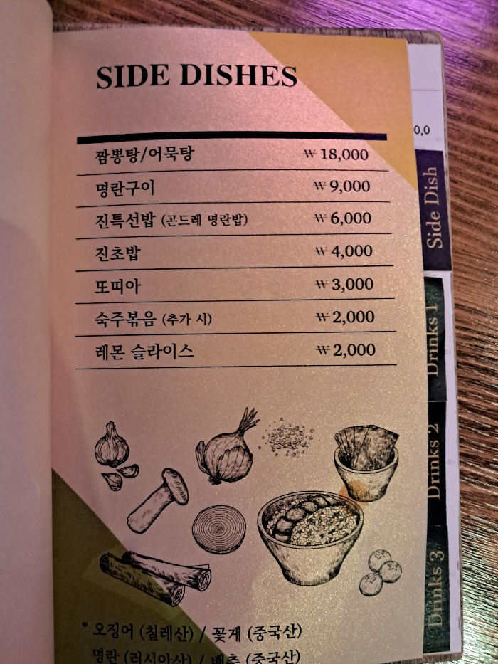 사이드메뉴로는 명란구이 ~