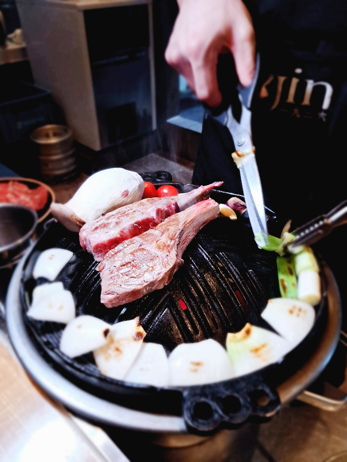 진1926의 양갈비를 직원 분이 직접 구워주고 계십니다. ^^