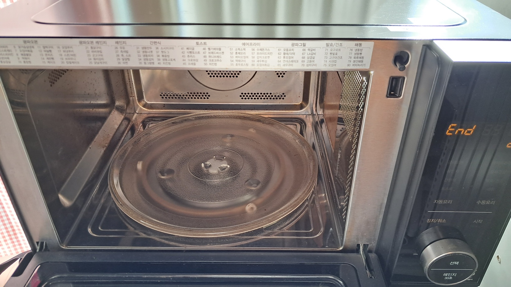 실제 3년째 사용 중인 SK매직 오븐레인지 EON-CP3A 모델이다. 깔끔하게 사용하고 있지는 못하지만 그럼에도 불구하고 잘 쓰고 있다. 그때그때 닦으며 사용해야 하는데 그게 참 쉽지가 않다. ^^
