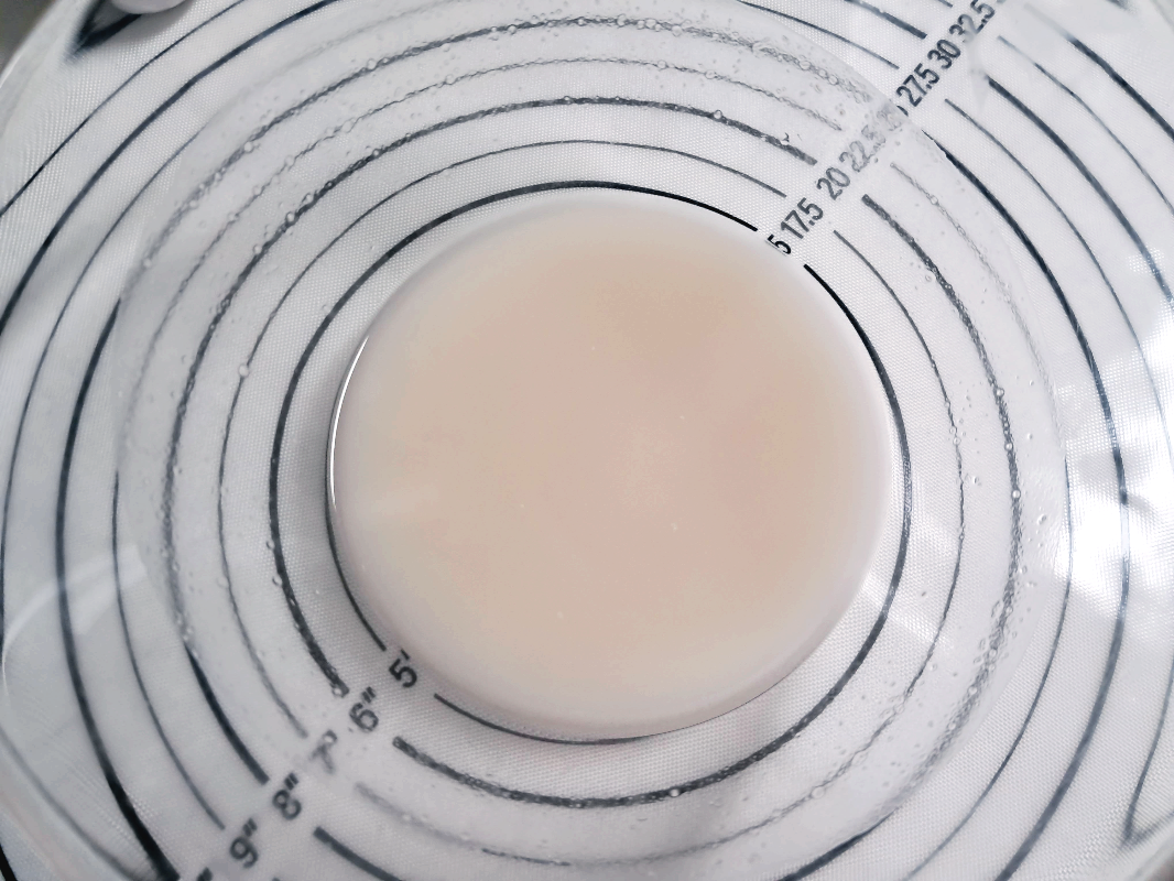발효 후 반죽에 손가락 넣어 보고 돌아오지 않으면 발효 완성된 거고요. 가스를 좀 빼준 뒤 둥글리고 한 번 하고 15분 정도 벤치타임 해 주세요.