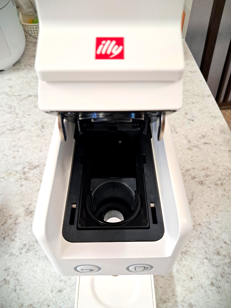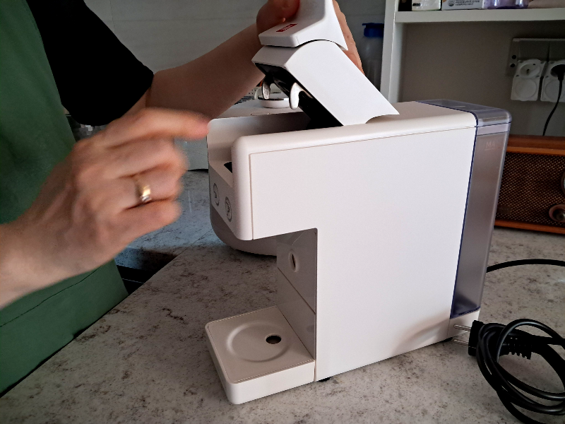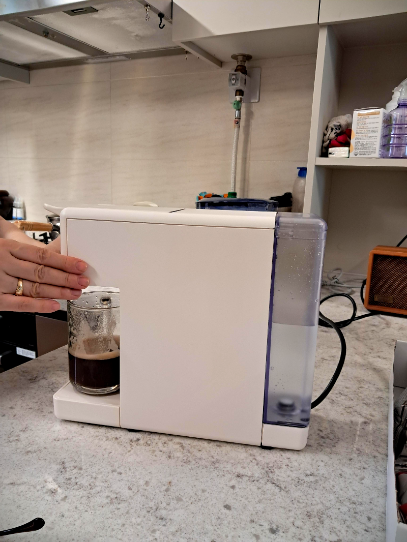 캡슐 넣는 곳이고 저는 커피머신 자체를 한 번도 사용해 본 적이 없어서 뭔가 재미있었어요. 집들이 선물 받은 지인이 직접 내려주는데 어찌나 커피 향도 좋던지...