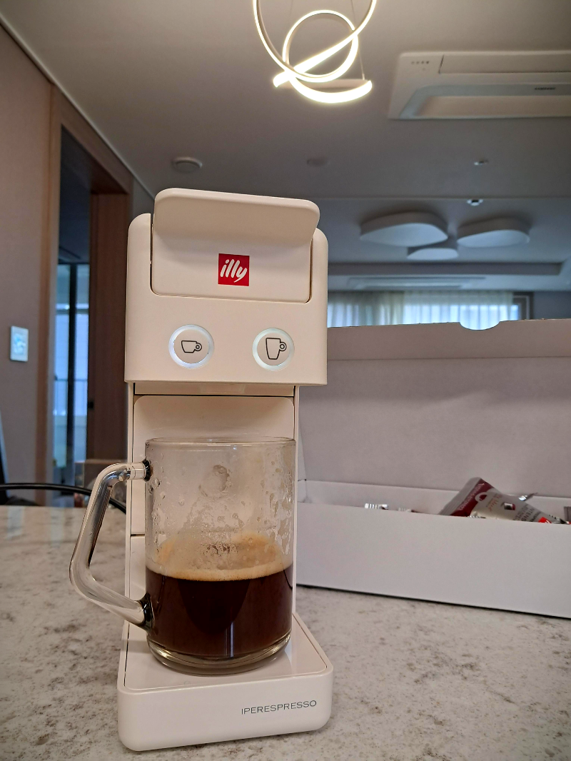 요즘 커피 값도 아까워 카페 가는 돈 아끼고 있는데 집에서 대충 우유로 라테 타먹고 그렇게 지내고 있어요. 그런데 집들이 선물로 가져가 보니 일리커피머신 프란시스Y3.3가 모델도 이쁘고 직접 내려 주신 커피를 먹어보니 맛도 있더라고요.