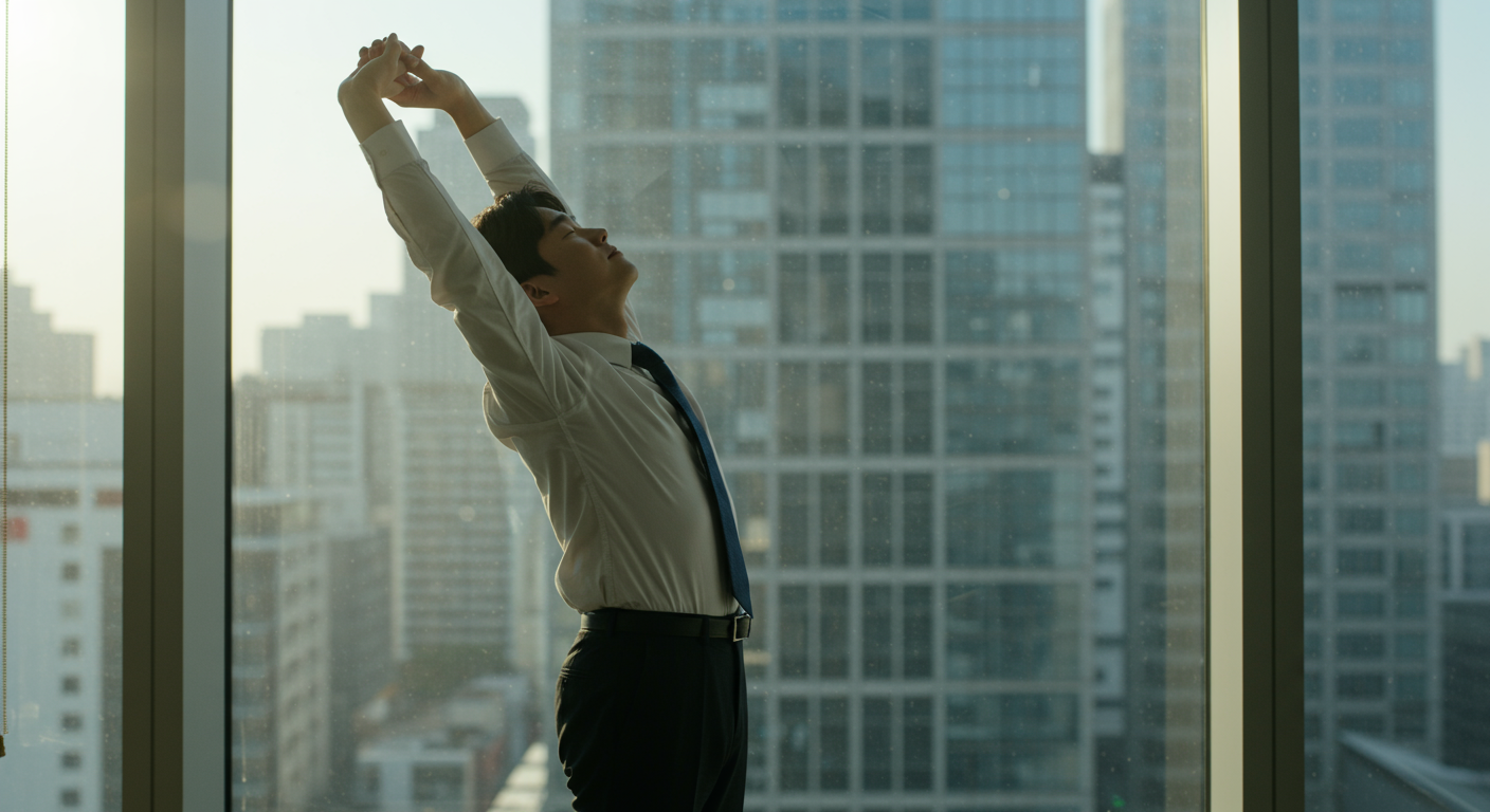 앉아서 일하는 시간이 길어지면 뇌는 계속해서 교감신경의 긴장 상태를 유지하라는 신호를 보냅니다. 이 신호를 의도적으로 끊어주는 '짧은 휴식 시간'이 꼭 필요해요.