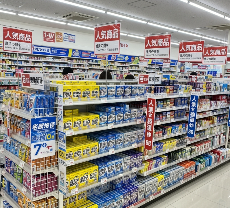 여행 둘째 날, 저녁부터 으슬으슬하기 시작했어요. 다음 날 일정도 빡빡한데 아프면 안 되잖아요? 급하게 숙소 근처 마츠모토 키요시에 들어갔죠. "몸살기가 있고 열이 조금 나요"라고 번역기를 돌려 보여드리니, 약사님이 파란색 박스의 벤자브로크 를 집어주시더라고요. '일본 감기약' 시장에서 다케다 제약의 벤자브로크는 한국의 판피린이나 화이투벤 같은 존재라고 해요. 현지인들이 믿고 먹는다는 말에 귀가 팔랑거려 바로 장바구니에 담았답니다. 가격은 드럭스토어마다 다르지만, 프리미엄 기준 대략 1,500엔에서 2,000엔 사이였어요.