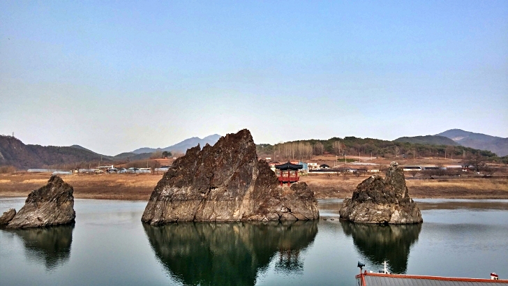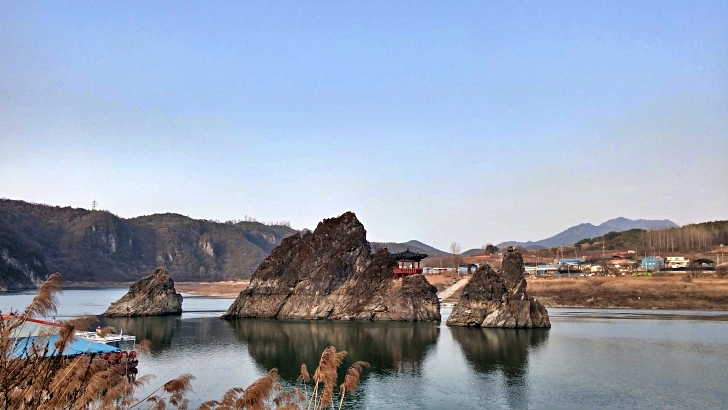 근데 현대적인 보트보다는 진짜 뗏목이라면 어떨까요? 아니면 뗏목처럼 보이는 보트도 괜찮을 듯하고요. 도담삼봉을 한 바퀴 돌면서 남한강을 따라 꽤 긴 구간을 돌아볼 수 있게 한다면 꼭 타볼 것 같아요.
