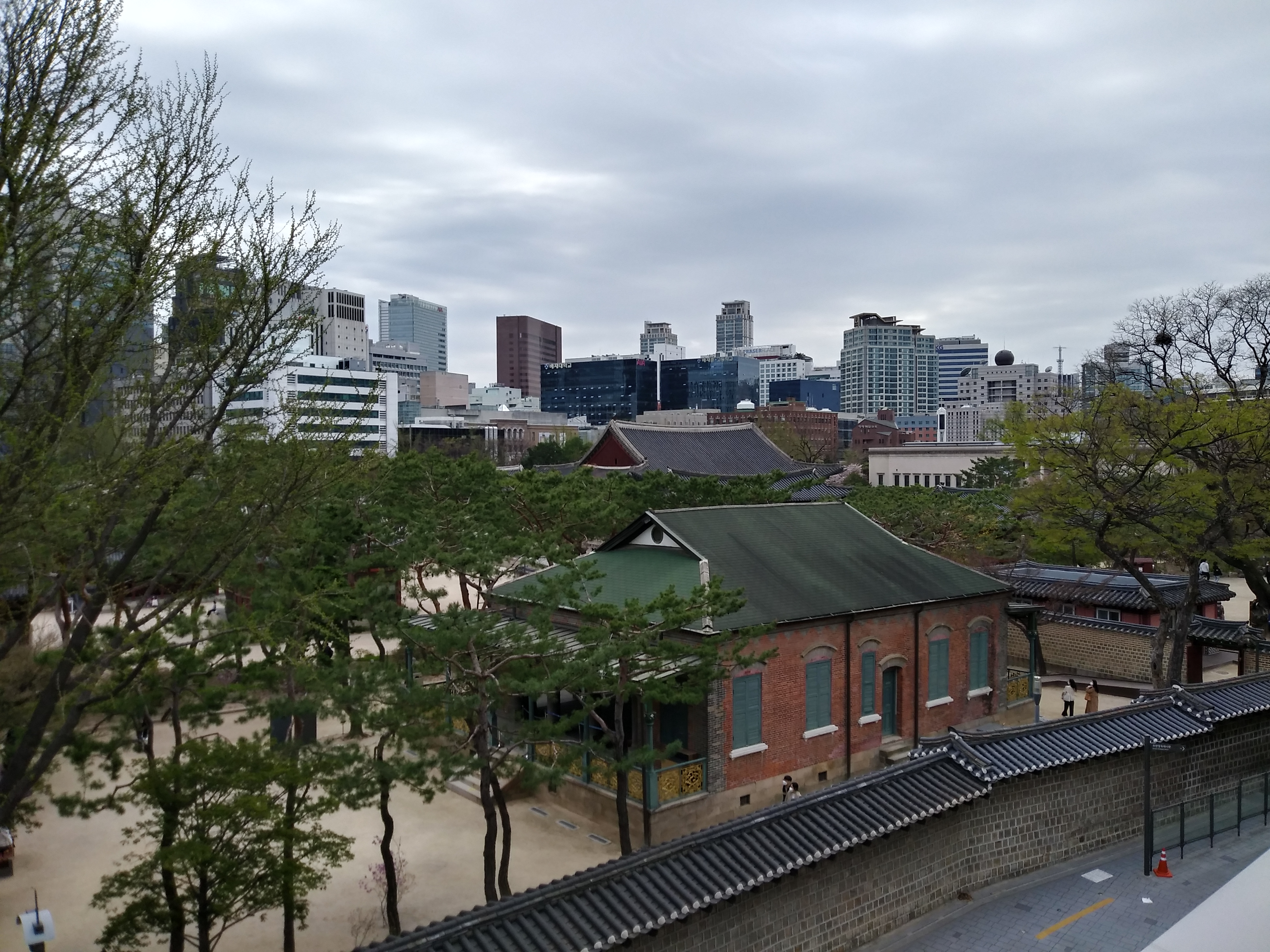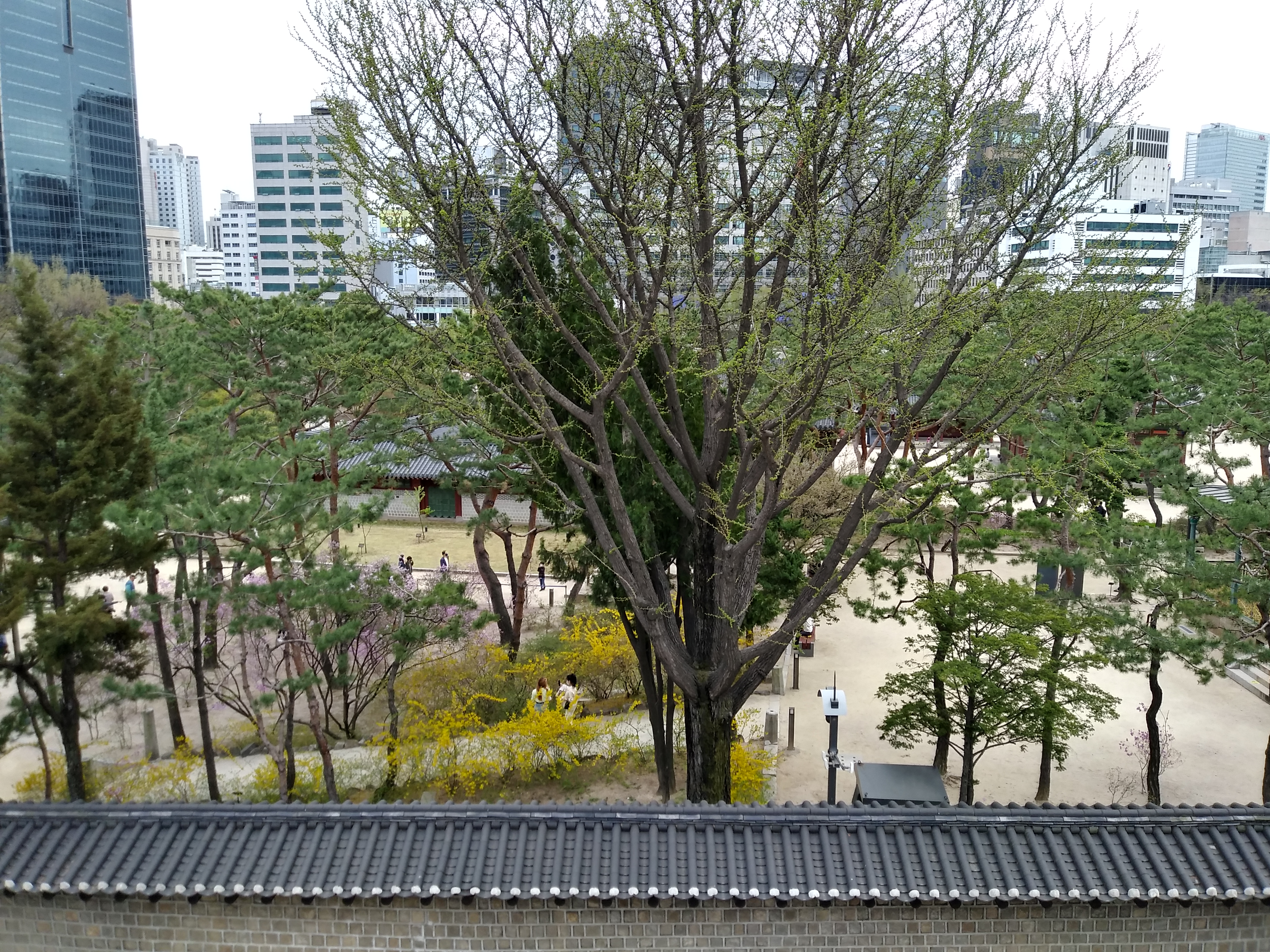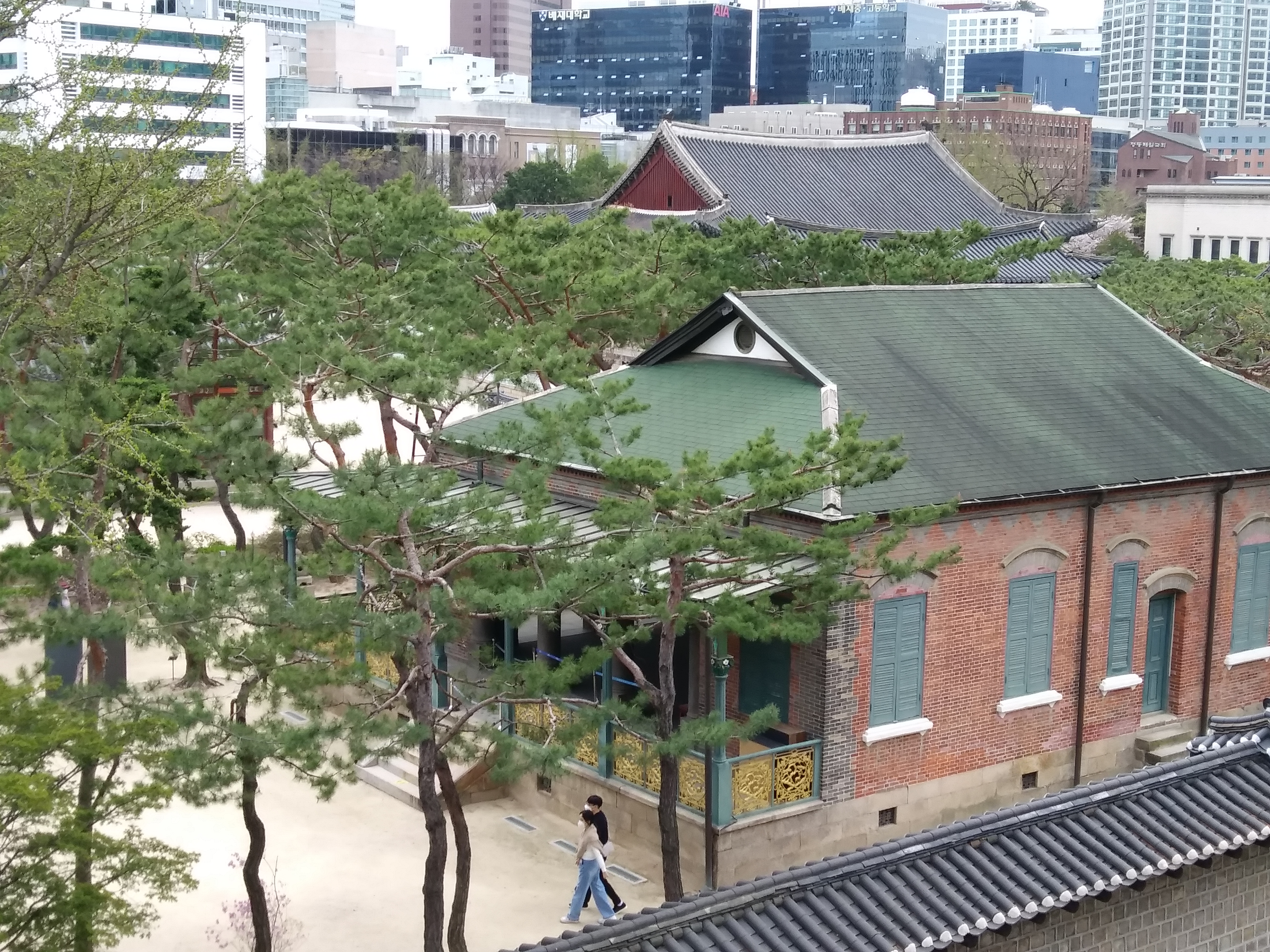그리고 세실마루에 마련된 벤치에 앉아 있으면 이렇게 덕수궁을 내려다볼 수 있어 너무나 분위기도 좋았어요. 날씨가 좋아서 덕수궁 내부에 방문객들도 많이 보이고 바라만 봐도 치유가 되더라고요.
