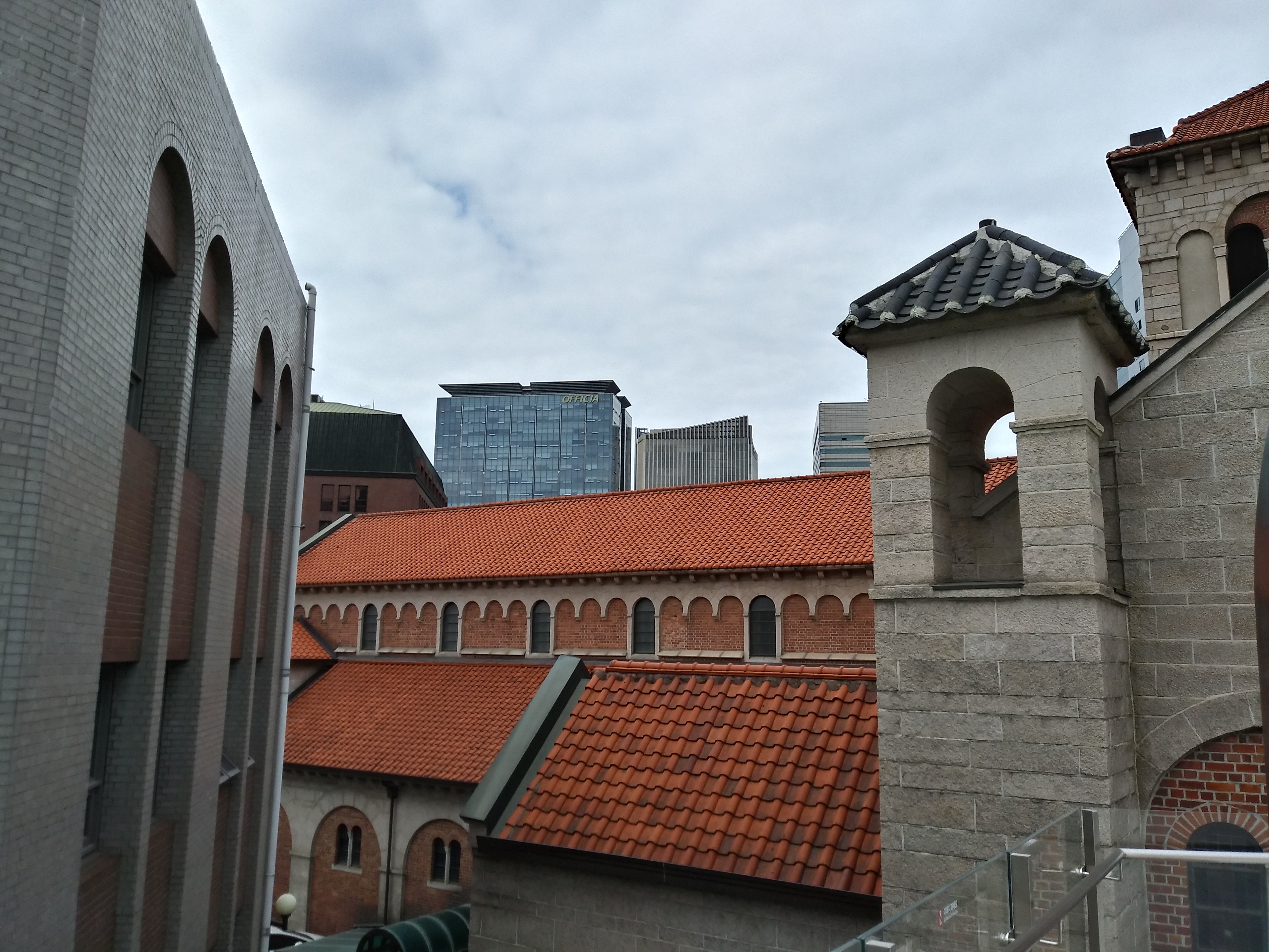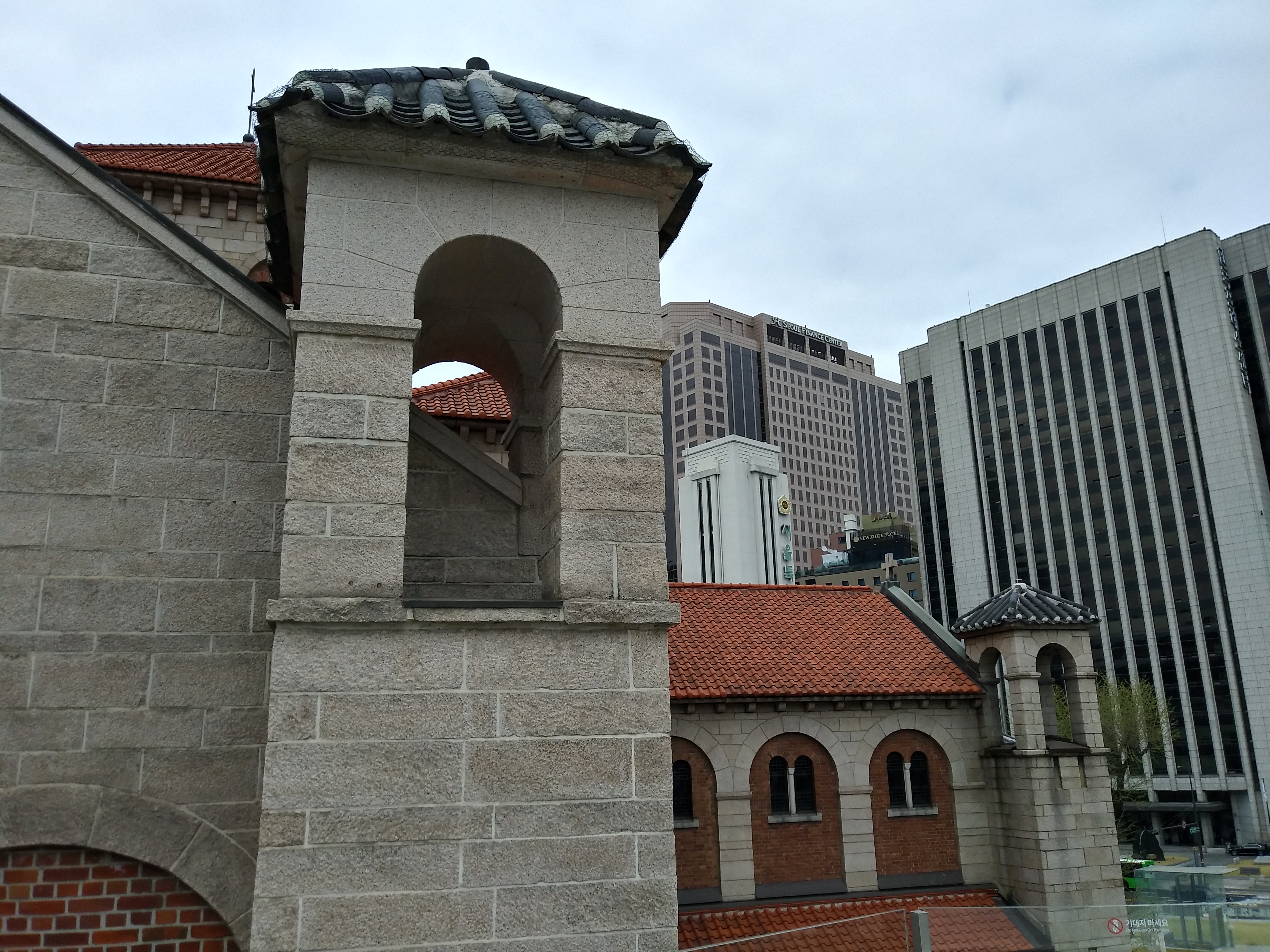 엘리베이터를 내리자마자 보이는 대한성공회 서울대성당의 안쪽 모습을 자세히 볼 수 있어 좋았답니다. 예전에 이 곳이 막혀 있을 때는 살짝만 보이던 성당 모습이 이렇게나 자세하게 볼 수 있네요. 아주 잠깐 유럽의 어느 성당을 본 듯 한 기분이었어요.