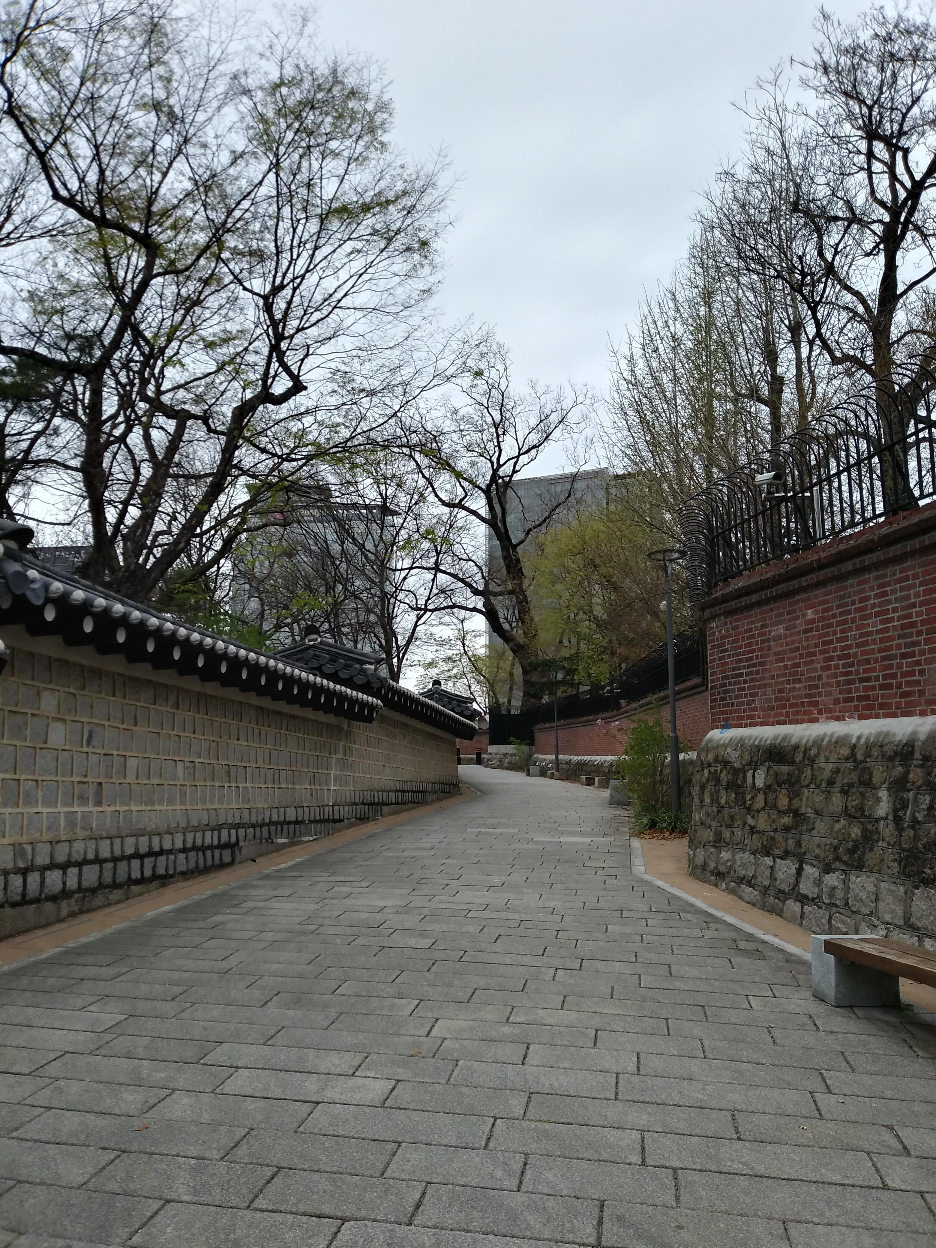 그런데 말입니다~ 덕수궁 돌담길을 완전히 돌기 위해서는 이렇게 덕수궁 일부 구간을 내부 보행로로 통해야 한답니다. 오히려 덕수궁 내부를 살짝 엿볼 수 있어 나쁘지는 않았어요. 그러나 덕수궁에 들어가 보고 싶다고 저 울타리를 넘는 사람은 없기를 바랍니다.